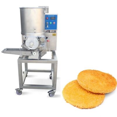 Automatic Fish/Chicken Meat Patty Hamburger Burger Forming Making can automatically complete the meat filling, molding, output and other processes, with the sizing machine, the powder (chip) machine, frying machine, cooking machine, quick-freezing machine, packaging machine into a cooked food production line. With high yield, stable quality characteristics.